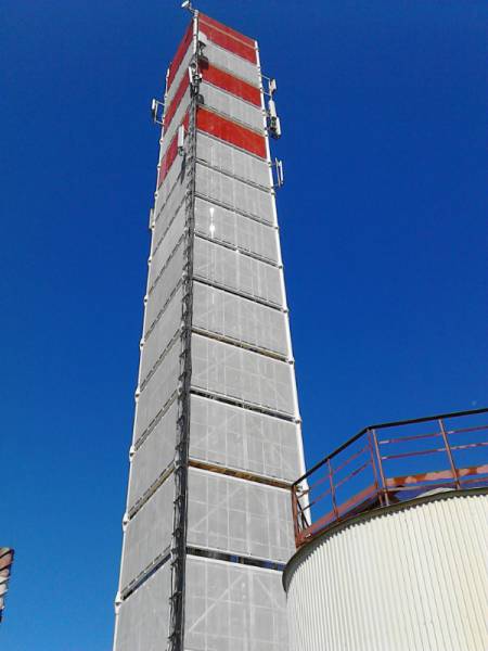 Монтаж дымовых труб высотой 73 метра (диаметрами 1310 мм и 1000 мм) на несущей металлоконструкции по ул. Июльских дней